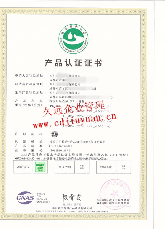 節(jié)水產品認證證書